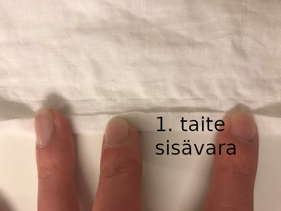 Taita kankaan reunasta vielä 15 milliä risareuna jää päärmeen sisälle piiloon.