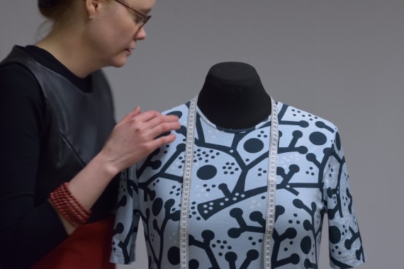 Kerkesin vielä työpaikan pikkujouluihin perjantaiksi. Suomi 100 juhlien ansiosta laskeutui pikainen mekon helmanlyhennys leikkuupöydälle, joten pääsin juhlista kotiin ajoissa. Sunnuntai-iltana sain kaavat piirrettyä myös asiakkaan trikoomekkoon.