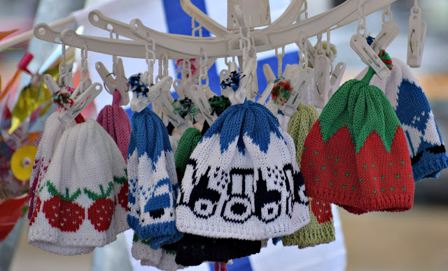 Eilen vietettiin laatuaikaa naisten kesken Kalamarkkinoilla. En malttanut kuitenkaan olla kuvaamatta keväistä hattukavalkadia, joka tervehti markkinoilla. Hattuja oli tehty neuloen, virkaten ja ommellen. Hatut olivat kotoisin niin Intiasta kuin kotimaastakin.