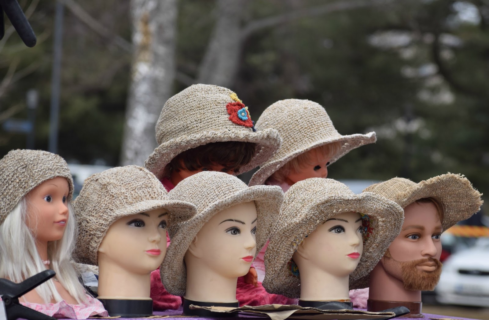 Eilen vietettiin laatuaikaa naisten kesken Kalamarkkinoilla. En malttanut kuitenkaan olla kuvaamatta keväistä hattukavalkadia, joka tervehti markkinoilla. Hattuja oli tehty neuloen, virkaten ja ommellen. Hatut olivat kotoisin niin Intiasta kuin kotimaastakin.