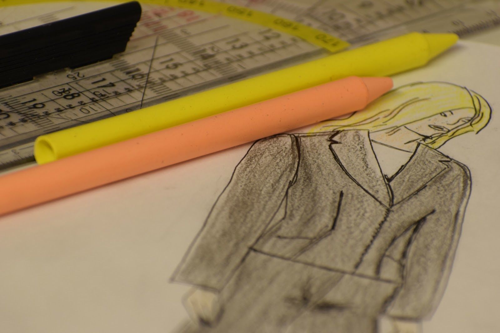 Ommellaan koevaate, sovitetaan ja muutetaan kaavoja tarvittaessa. Leikataan päällis- ja vuorikankaat, liimataan tukikankaat. Ommellaan millintarkasti. Toukokuun viimeisellä viikolla on sitten deadline. Kuten näkyy, tänään en ommellut enkä kirjoittanut, vaan harrastin piirtämistä. Oheistettuna on tunnelmakuva työn alla olevasta malleista. Kuvakin on tosin osa näyttöä, joten nyt kai tämä sitten virallisesti aloitettu.