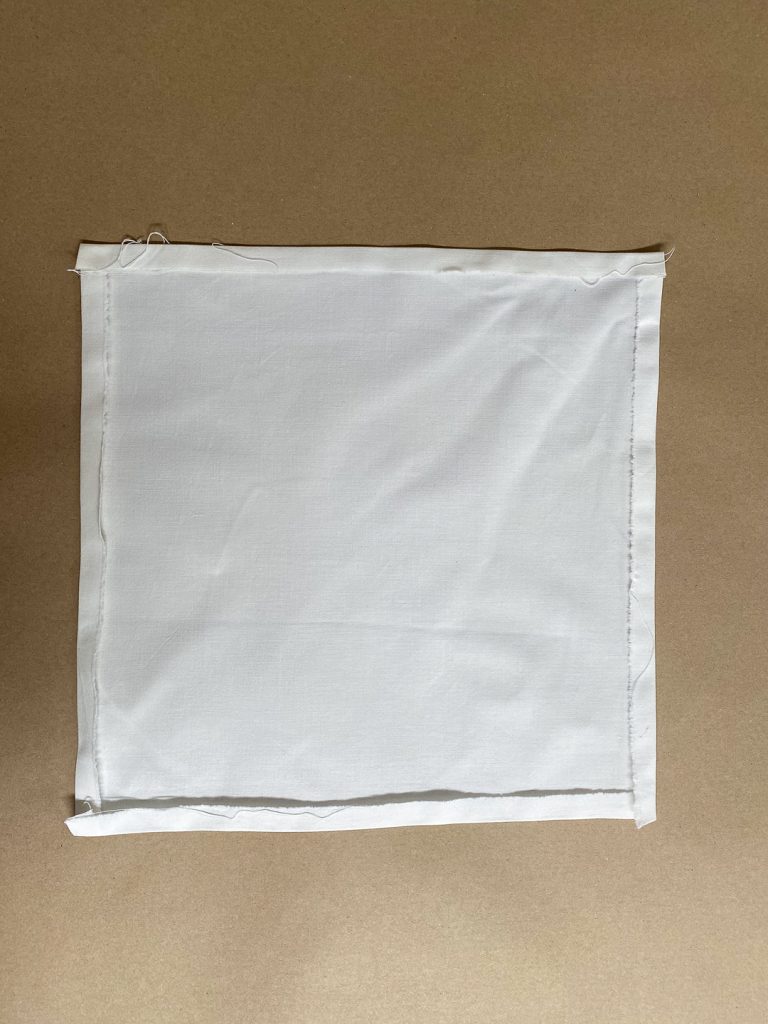 - Merkitse reunukset: Viivottimen avulla jätä liinan reunoihin kaistale, johon ei tule koristeommelta. Piirrä rajat kevyesti liitukynällä.