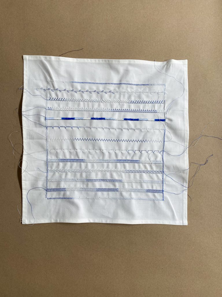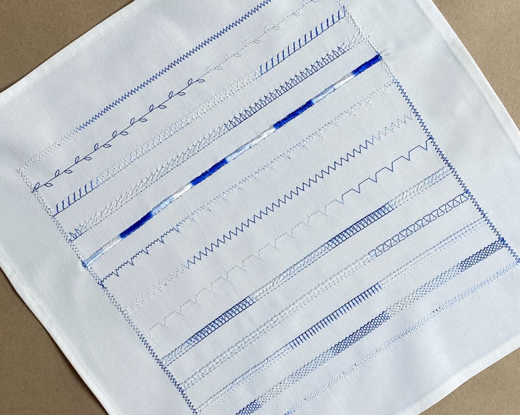 - Ompele koristeet: Valitse koneesi koristeommel ja ompele taitteiden mukaisesti. Voit vaihdella ommelkuvioita riveittäin.
