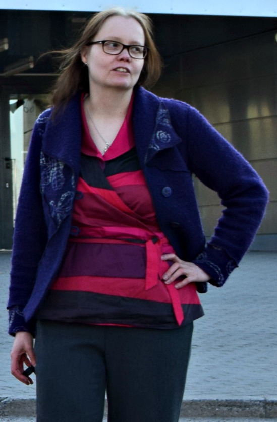 Hieman tätä ja sunnuntaina ounastelinkin.  Sunnuntaina vielä optimistina ajattelin, että lihasten arkuus ja jäykkyys johtuvat lauantain hallitsemattomasta laskeutumisesta, mutta ei. Alkuviikosta flunssa  sai minut kiinni. Kävin kuitenkin viettämässä ompeluaikaa alkuviikosta Kuopiossa, mutta alkavan flunssan aiheuttama tahmeus sekä aivoissa, että sormenpäissä hidasti ompelevan insinöörin tahtia huomattavasti, joten liituraitajakku on edelleen viittä vaille valmis. Kun en nyt tähän postaukseen saanut valmista jakkua kuvaan, niin sovelletaan.