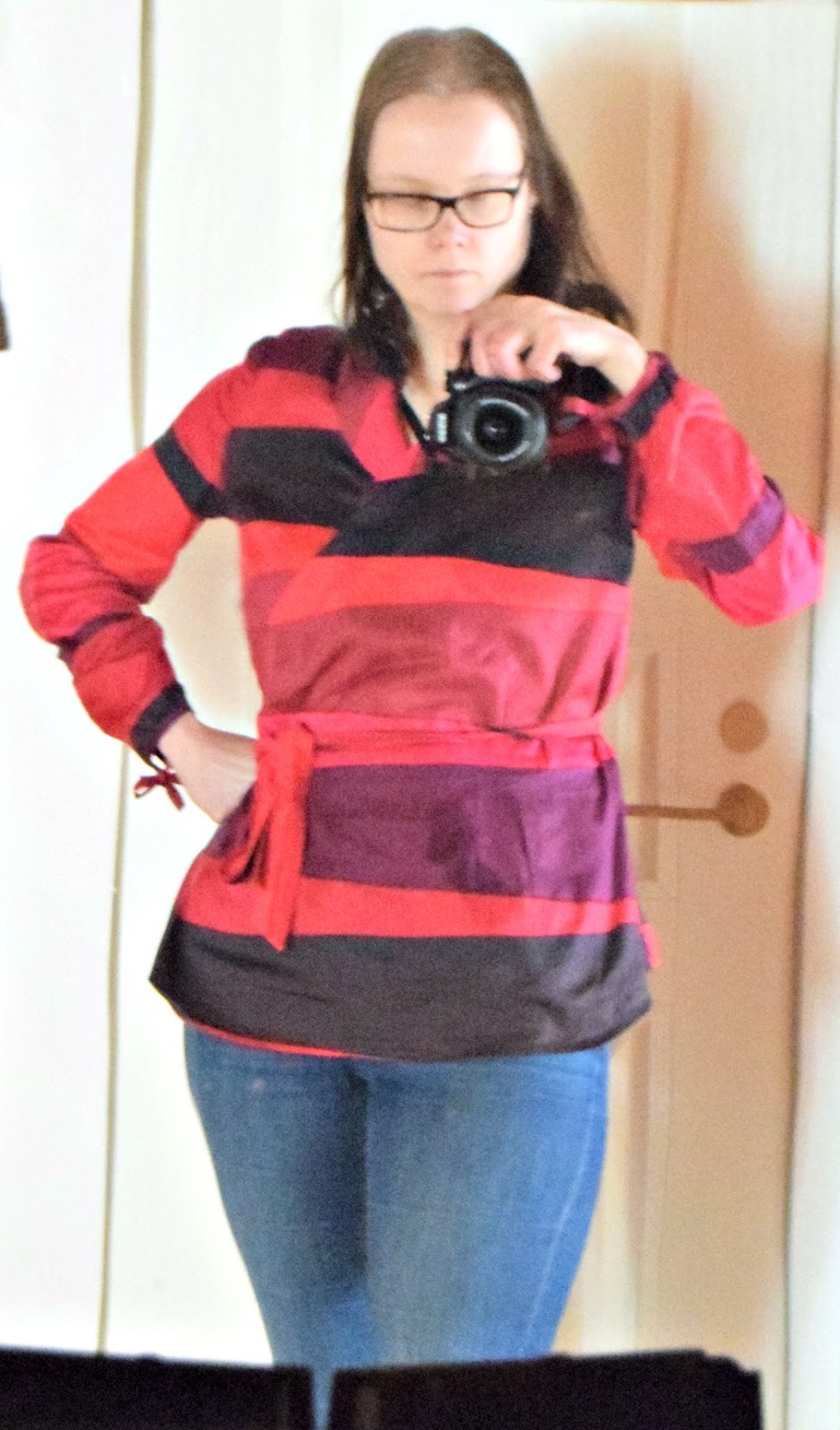 Tein viime keväällä silkkipuuvillasta kietaisupuseron laakakauluksella. Kurvikkaalle vartalolle kietaisumallit sopivat oikein hyvin, koska vino linja ohjaa mukavasti katsojan katseen kohden kurvikkaan vartalon kapeinta kohtaa -vyötäröä.