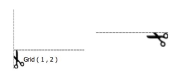 | Saksien kuva kertoo, mikä reuna leikataan pois, siis vasemmalla leikataan pystysuoraan oleva reuna ja oikealla vaakasuora oleva reuna. |