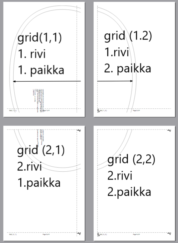 | Grid (1,1) kertoo tämän sivun paikan ruudukossa 1. ruutu ensimmäisellä rivillä. Tämä on ensimmäinen sivu neljästä tulostetusta sivusta. |