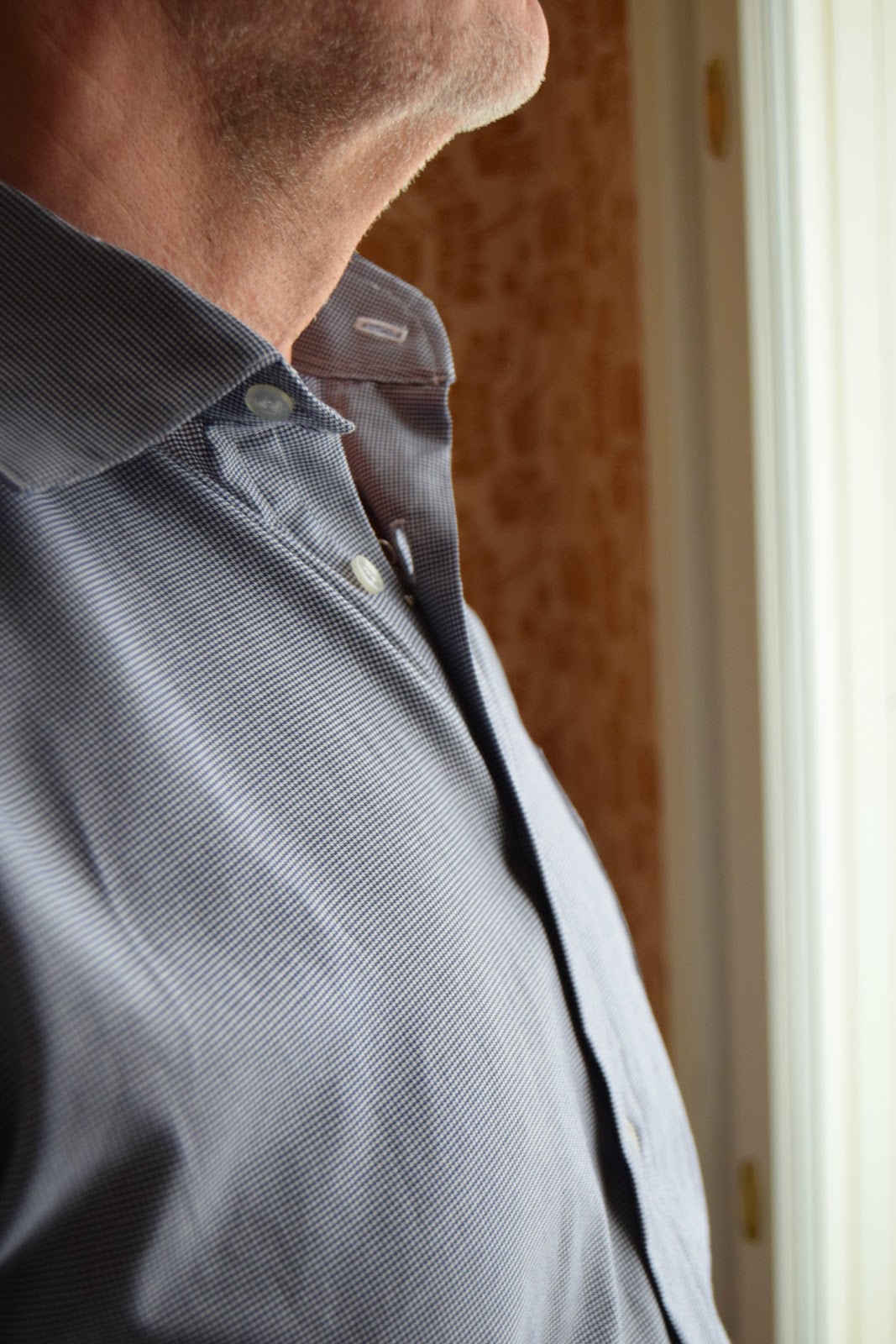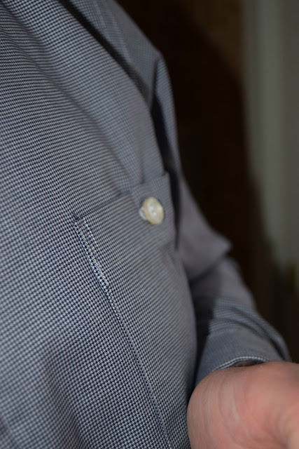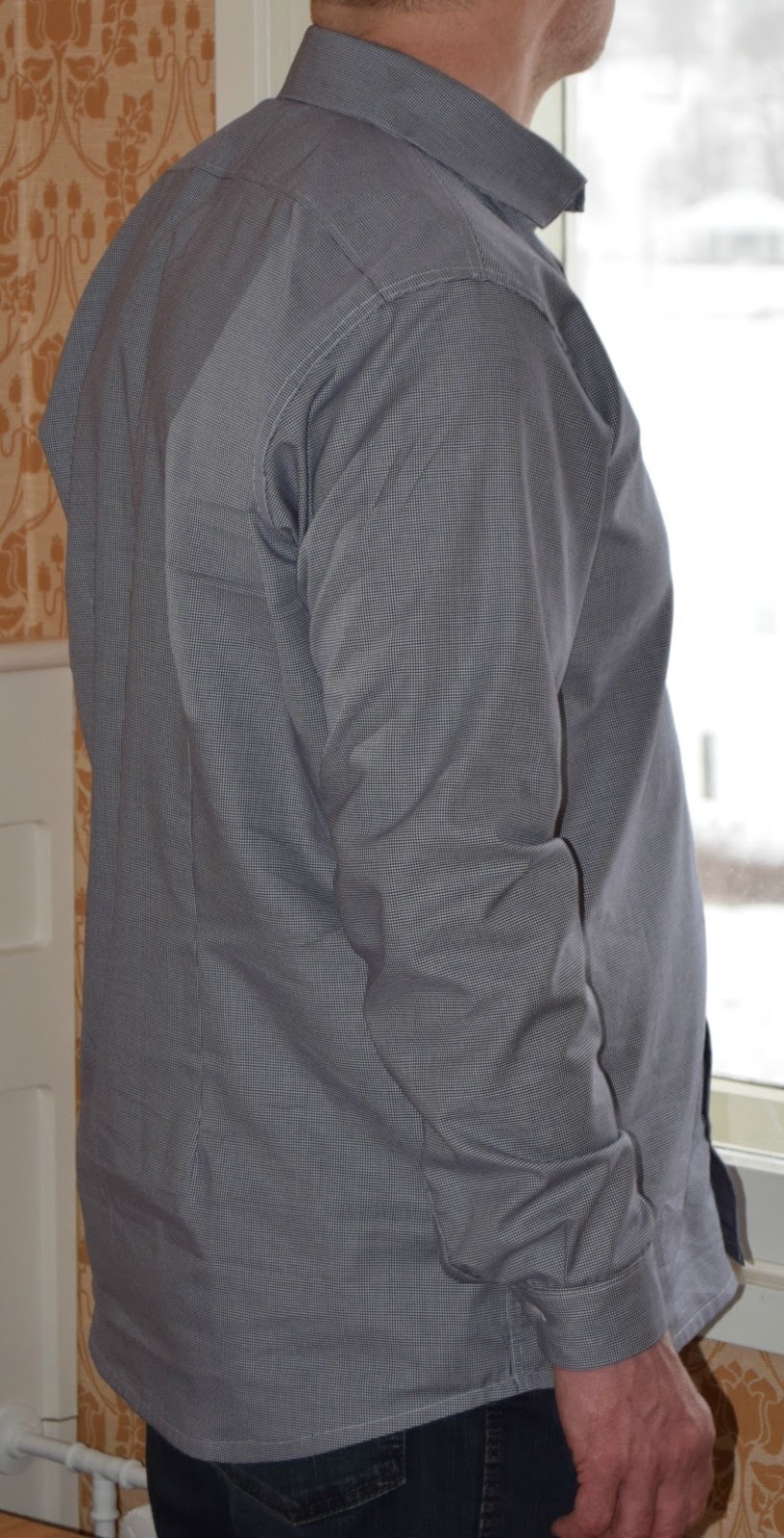 Nyt, kun pojat ovat kohta aikuisia, ja  he ovat niin olen äidin ompelukoneen ulottumattomissa, oli aika katsella uusia harteita. Ei liene yllätys, että näköpiiriin sattuneet hartiat kuuluivat komeammalle osapuolelle. Patistin miehen peilin eteen ja mittailin kriittiset mitat. Kaavoitin miestenpaidan, ompelin ensin koeversion (sain itselleni työtakin) mutta korjattu versio italialaisesta kankaasta pääsi jo käyttöönkin.