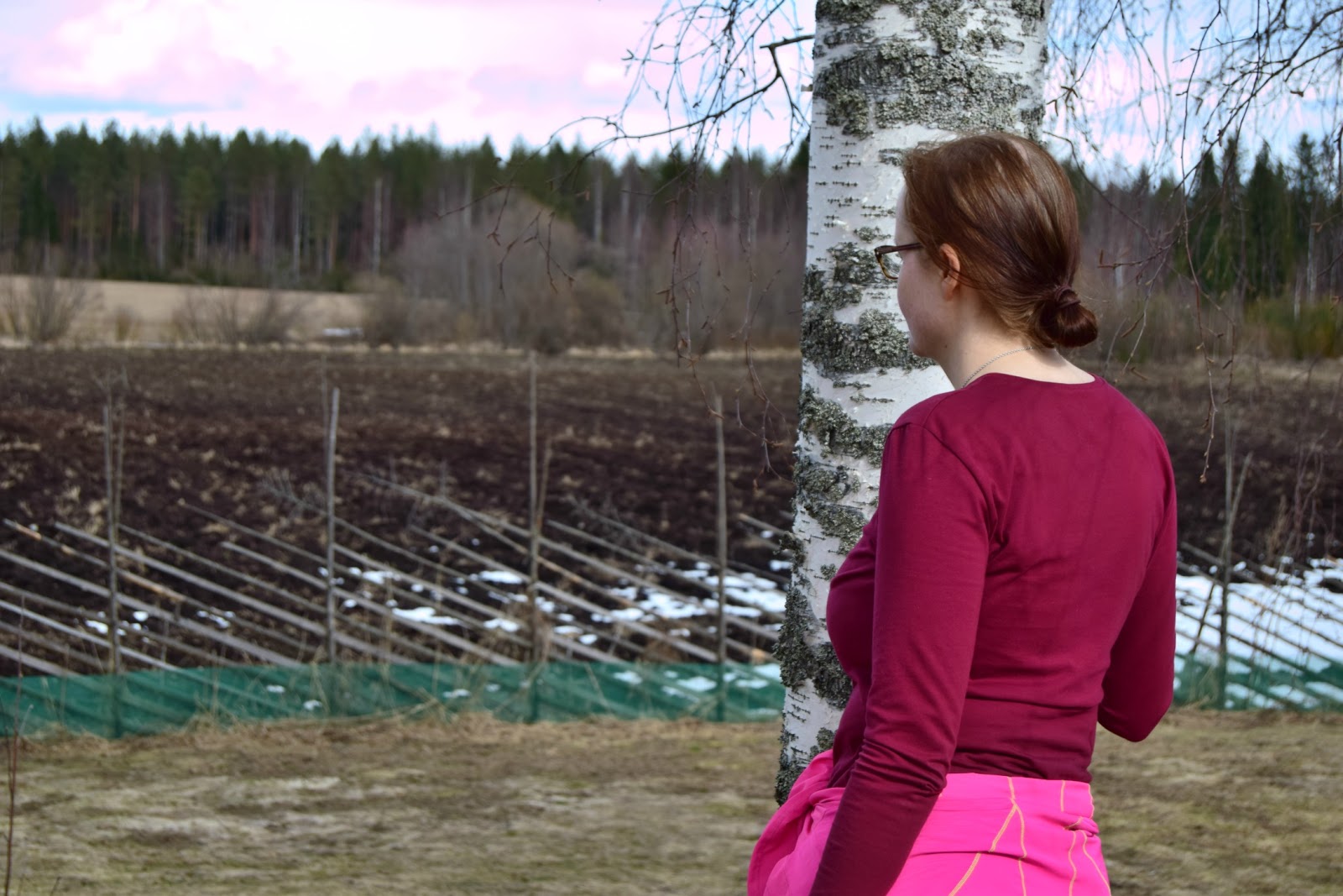Aamulla sain viimeisteltyä myös huhtikuun vuosi väriterapiaa ompeluksen. Viininpunaisesta trikoosta valmistui pitkähihainen puseron. On muuten elämäni ensimmäinen trikoosta tehty vaate, jonka olen kaavoittanut.