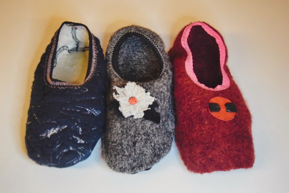 Tämän kertainen kaavamme on saanut innoituksena 50-luvun tikatuista tohveleista [1]. Tällä kertaa ajattelin,kirjoituksessani avata myös sitä, kuinka tossujen muodistaminen nykyaikaan tapahtui. Alla olevasta kuvasta löydät kolme ensimmäistä versiota naisten Metsäruusu -tossuista.