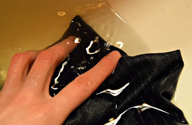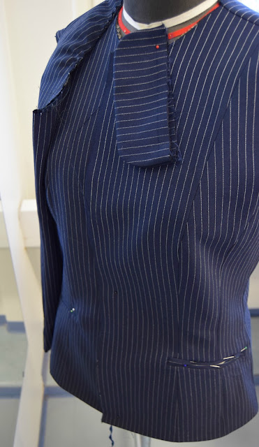 10.00 Ripustelin jakun mannekiinin päälle kuivumaan sadatellen ja totesin, että se siitä ompelusta