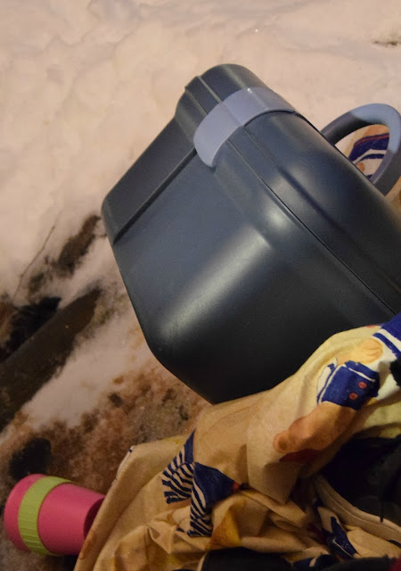 6.31.10 Katsoin, kuinka juuri keitetty kahvini värjäsi lumen ja pukupussin, jossa majaili viittä vaille valmis jakkuni