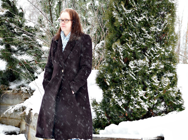 Maaliskuun projekti valmistui tänään. Ihan omalla designilla, omilla kaavoilla ja itse ommellen. Suklaisessa takissa on itse asiassa sama kaava kuin helmikuun harmaassa viettelyksessä.
